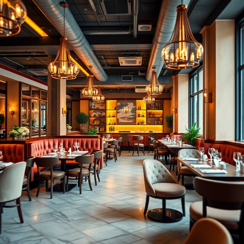Важным аспектом реконструкции является модернизация освещения, которое придаст помещению уютную атмосферу. Все старые светильники будут заменены на новые эффективные LED-аналоги, что не только дополнит элегантный стиль ресторана, но и сделает его более устойчивым в экологическом плане. Узоры и текстуры освещения помогут создать игривый и расслабляющий настрой, который сделает визит в ресторан незабываемым.
